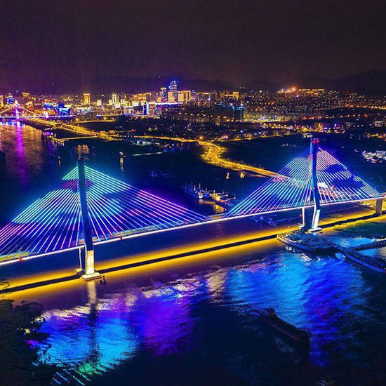 橋梁全彩LED燈光是通過安裝帶DMX512控制芯片的燈具,再通過電腦、控制器進行編程,使燈光能按程序展現不同效果,常用效果有炫彩、跑馬、漸變、像素屏。應用場景:橋梁亮化工···